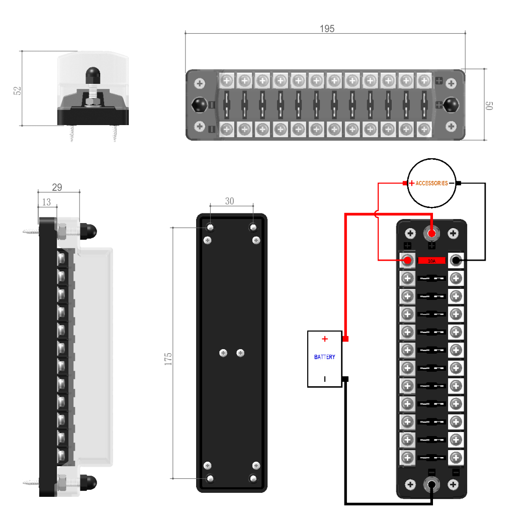 产品名称:Y1912F 1进12出正负极保险丝盒