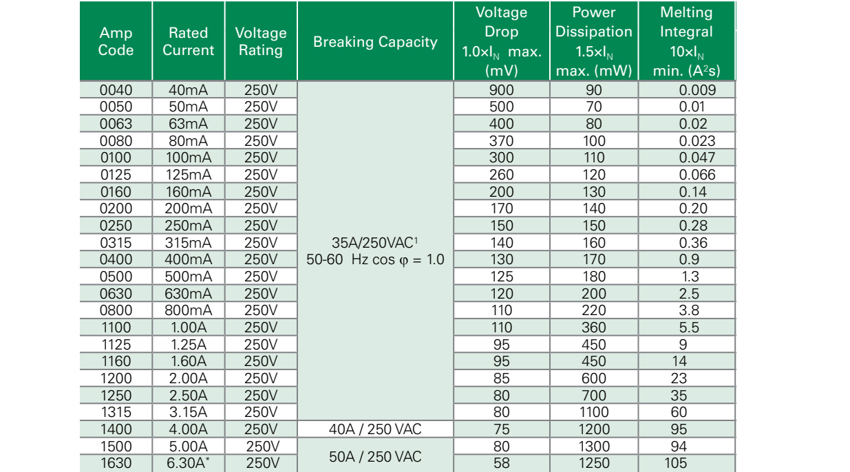 额定电流:40mA~6.3A