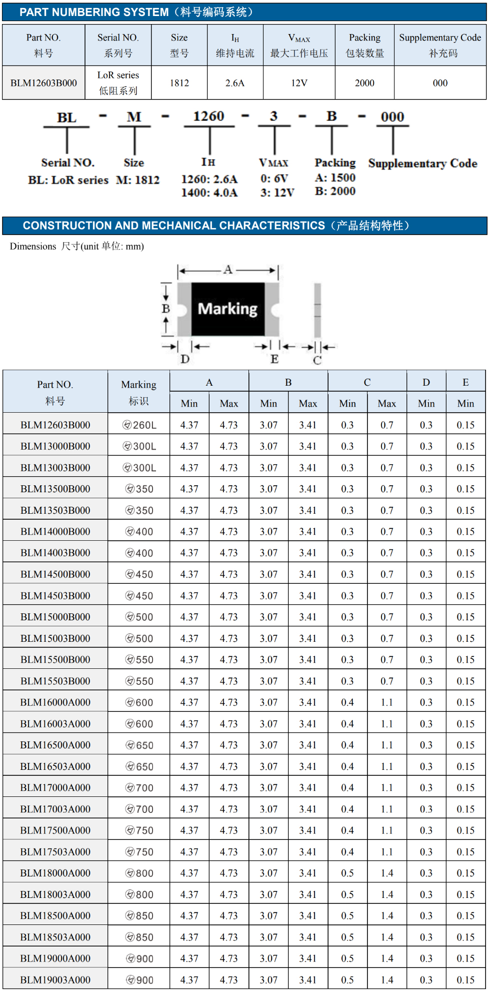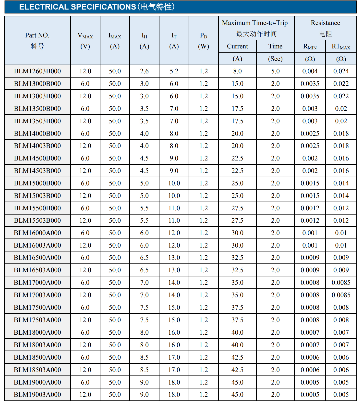 4.维持电流:2.6A-9.0A, @25℃