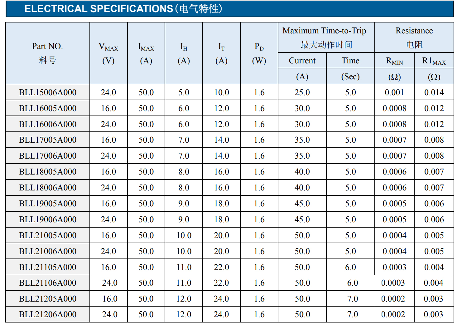 PPTC 2920 自恢复保险丝 低阻系列
