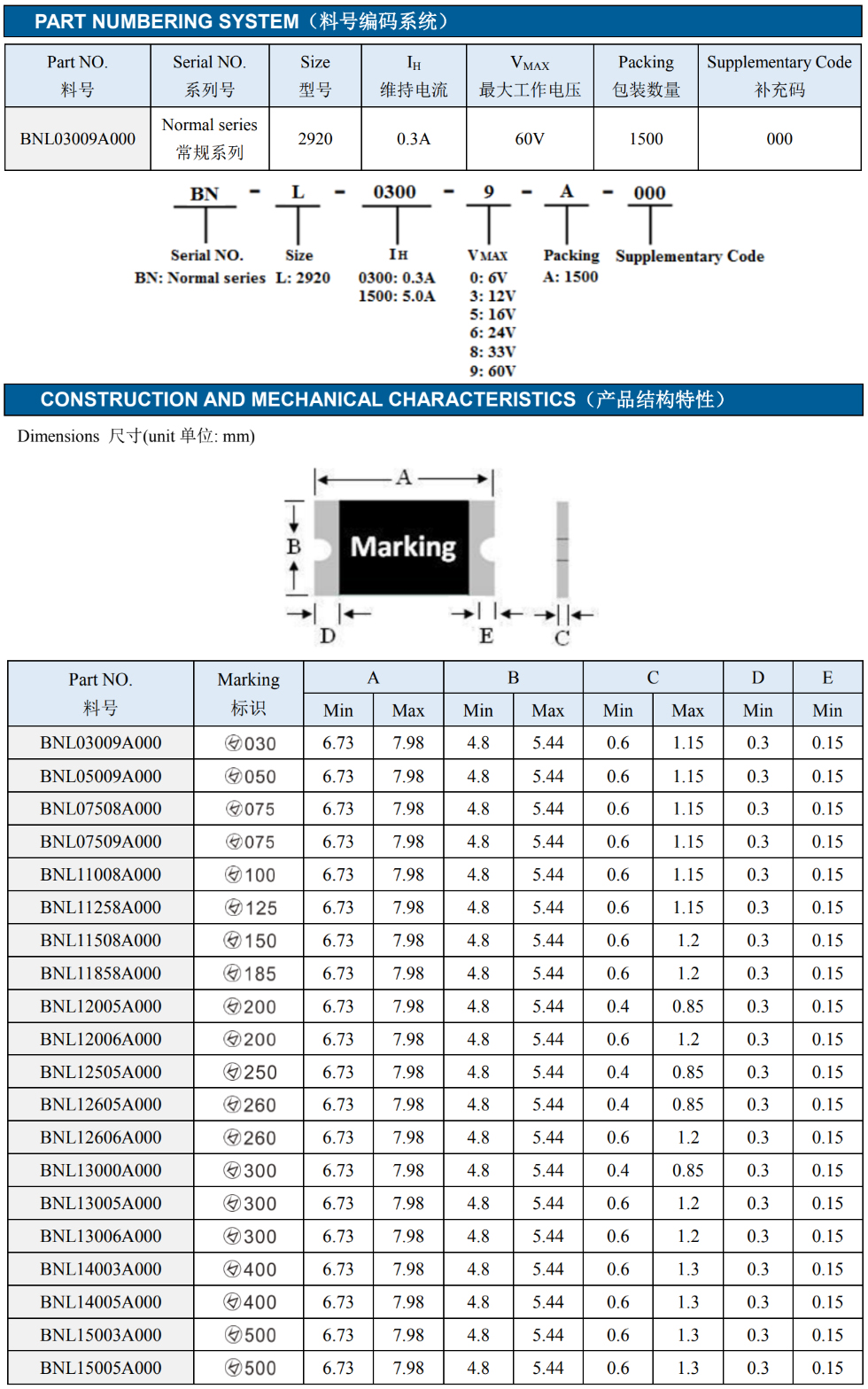 产品名称:2920自恢复贴片