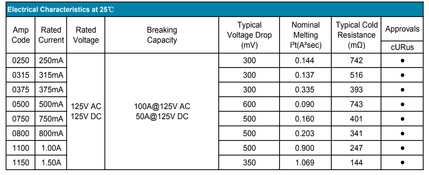 额定电流:250mA~1.5A